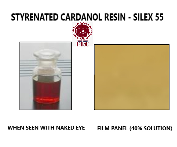 INTRODUCTION: SILEX TM 55 is Card Phenol based Phenolic Resins modified with Styrene. They are Golden yellow resins and are suitable for manufacturing Synthetic Hard Gloss Semi Darker & Darker Enamel Paints, Insulating Varnishes and Aluminum Medium having outstanding Film Properties. They can be blended with any conventional alkyds and can be used for making Lighter colour shades also.