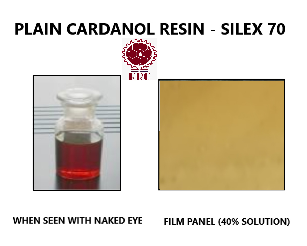 SILEX TM 70 has excellent resistance to the softening effects of mineral oils and high resistance to acids and Alkalis. They have antibacterial and insecticidal properties and good compatibility with other synthetic resins, such as alkyds, chlorinated epoxy rubber, Phenolic resins, etc. They can be used as raw materials for various paints. They are used to achieve the required gloss and flexibility, as well as having good mechanical strength, quick drying ability, rust and corrosion inhibiting properties, excellent resistance to water, acids, Alkalis and other chemicals. Cardanol-based resins are used as substitutes for alkyds in enamels and phenol in Phenolic resins.